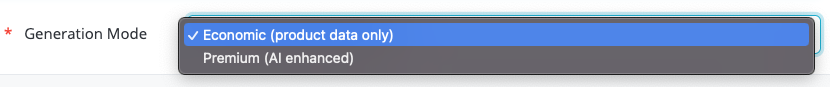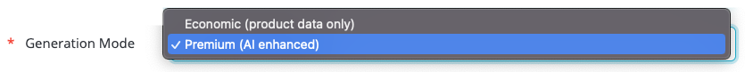 This mode only uses product data to generate the alternative texts: product name, category, and main features. The process is fast and free.
