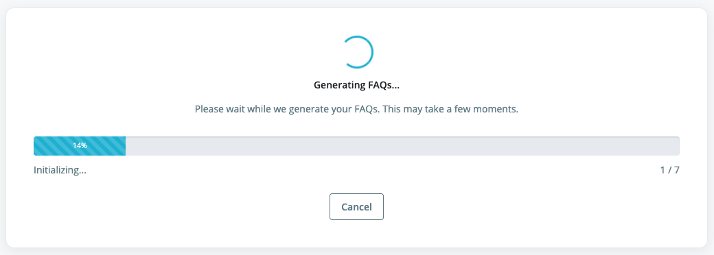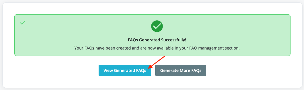 Follow the progress of the generation then click "View generated FAQs" to see the new FAQs in the manager: