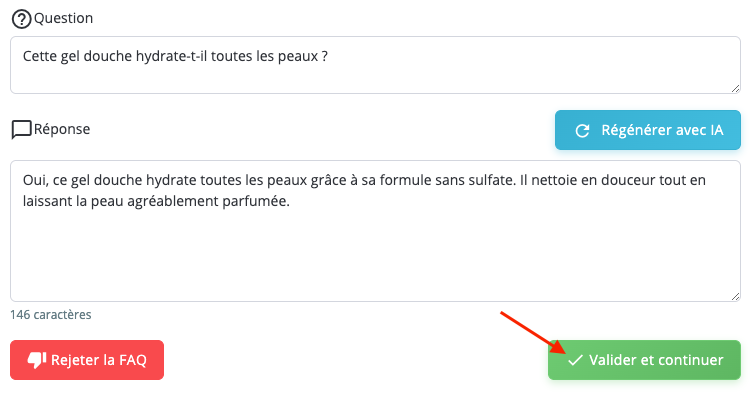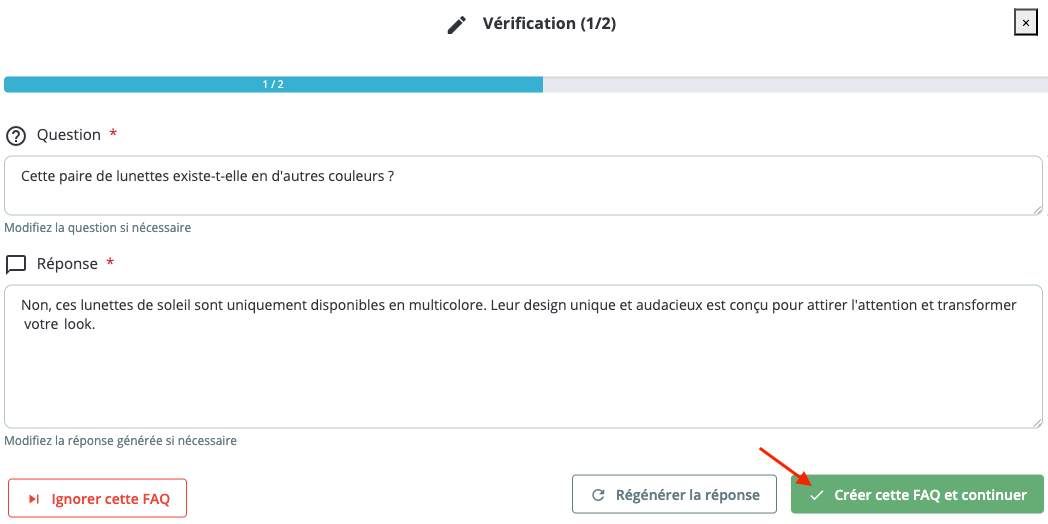 - Validez et passer à la suivante en cliquant sur "Créer cette FAQ et continuer"