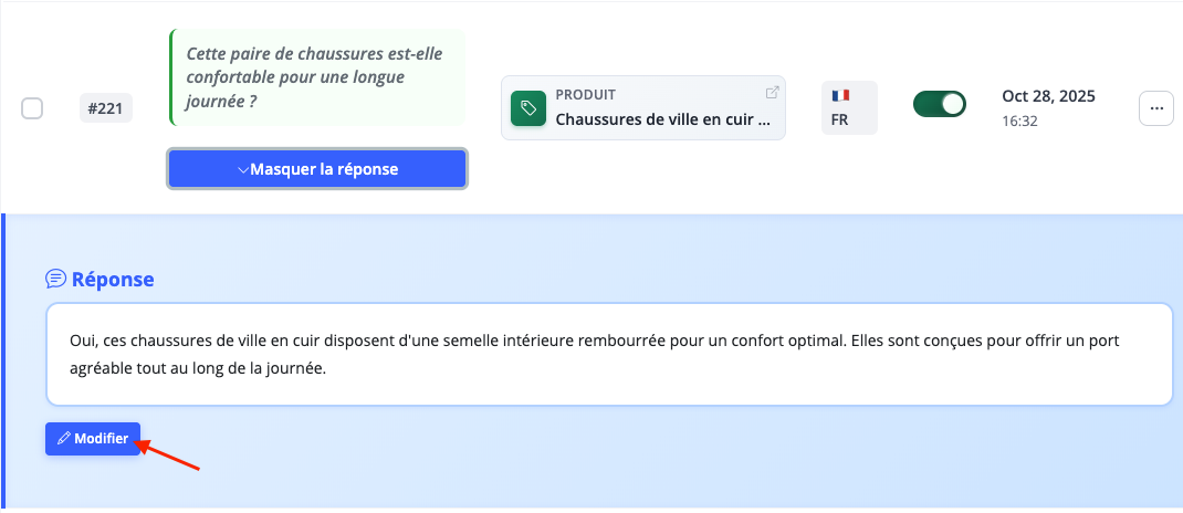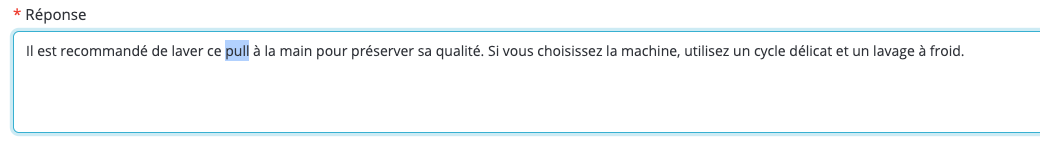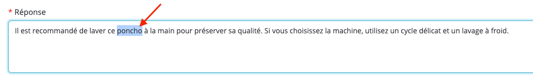 Vérifiez que le contenu de la question / réponse est adapté au nouveau produit et modifiez si besoin :