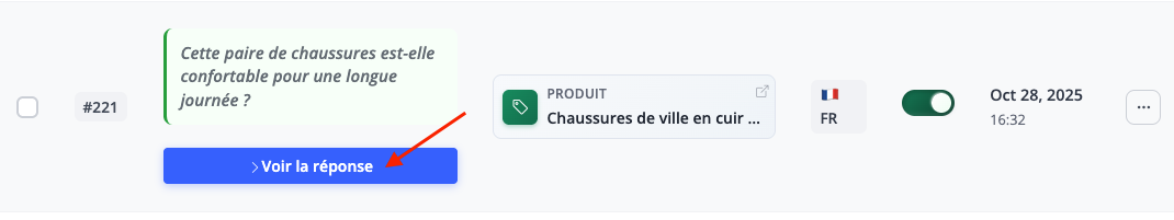 - Afficher la réponse directement dans la liste en cliquant sur "Voir réponse" et ouvrir le formulaire de modification si nécessaire