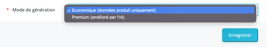 Ce mode utilise uniquement les données du produit pour générer les textes alternatifs : nom du produit, catégorie et principales caractéristiques. Le traitement est rapide et gratuit.