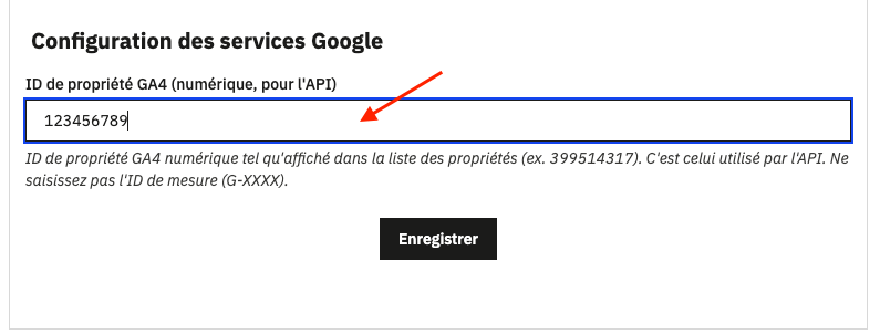 Pour renseigner votre ID de propriété Google Analytics, suivez les étapes suivantes :